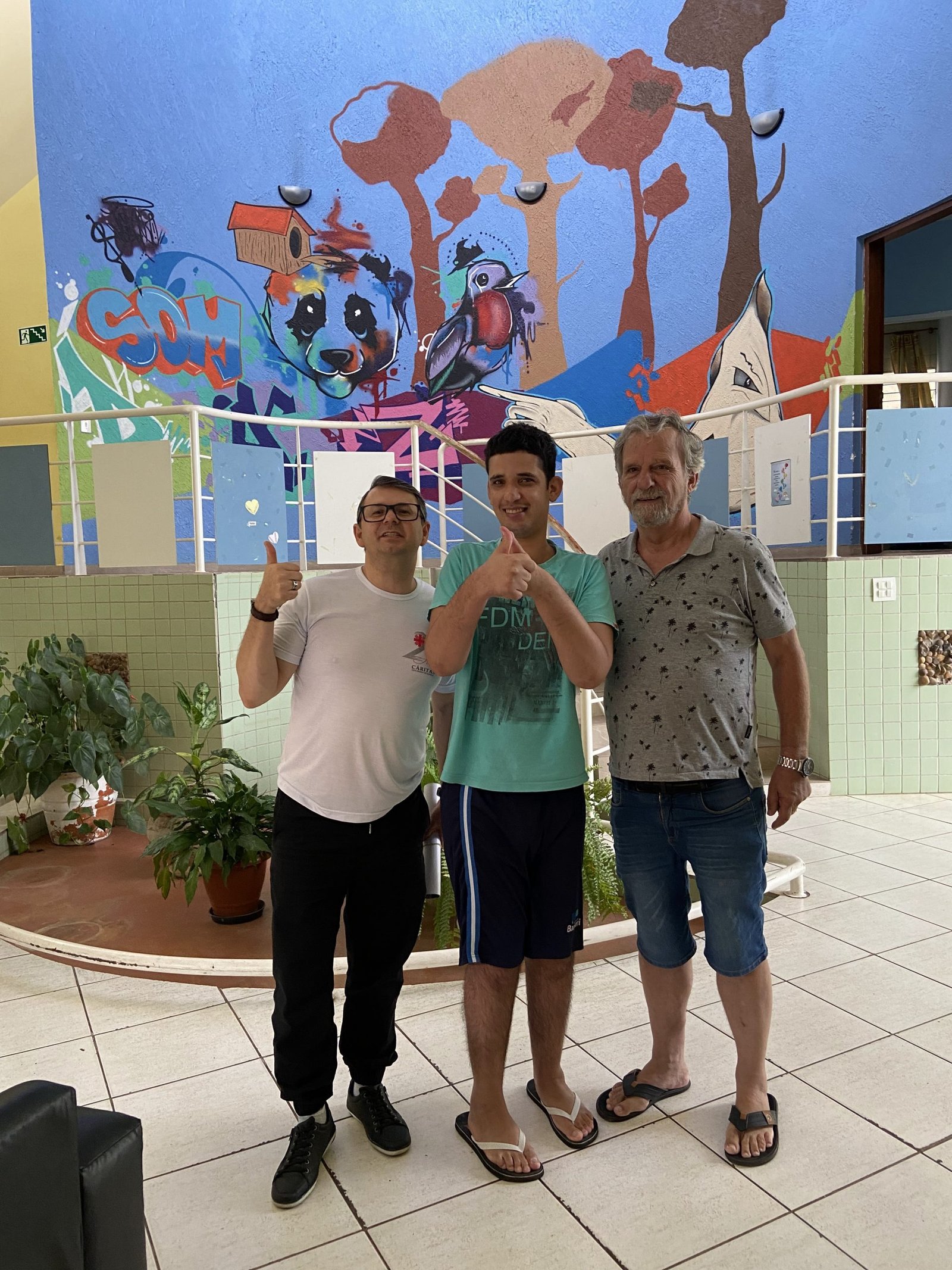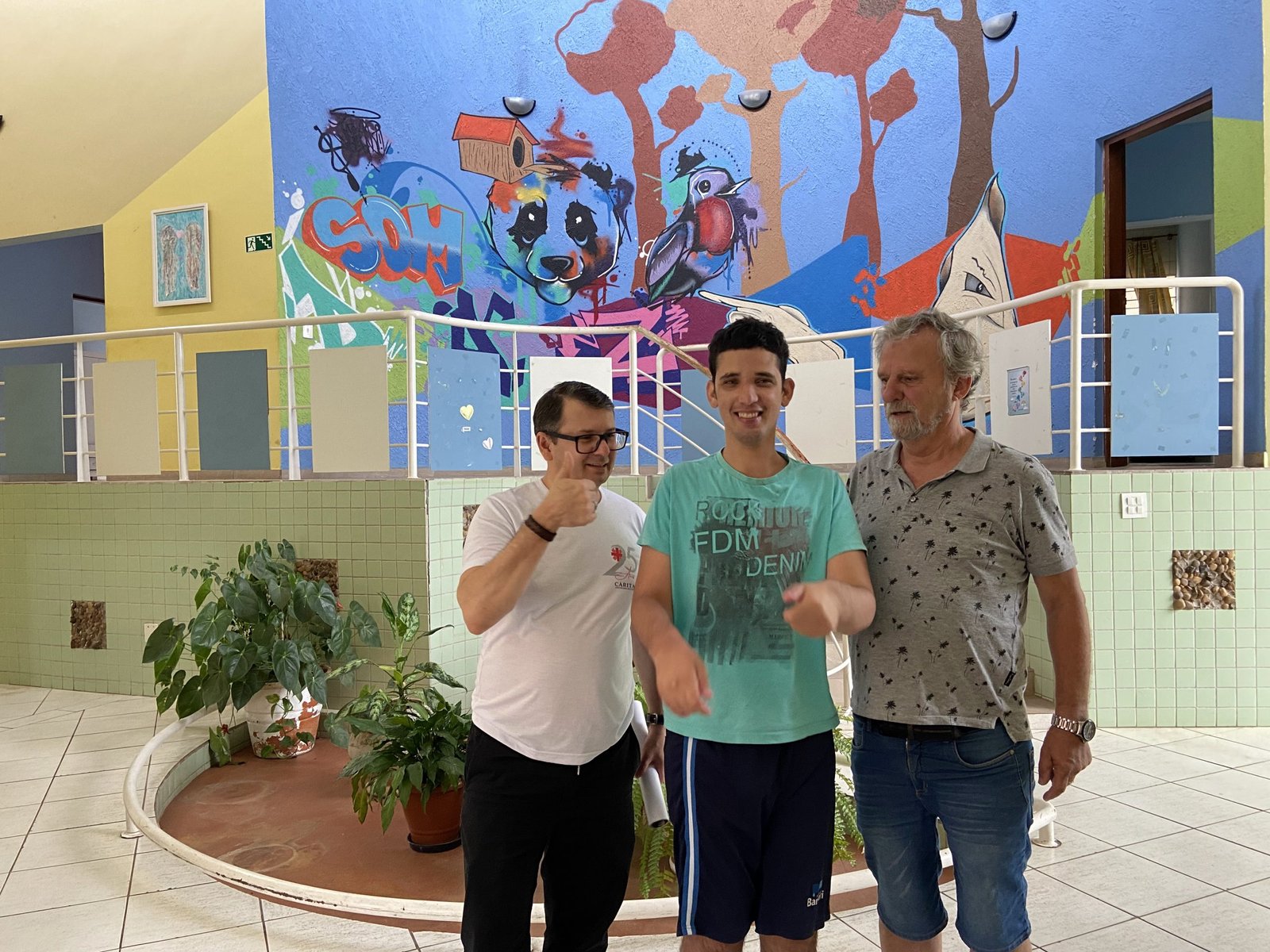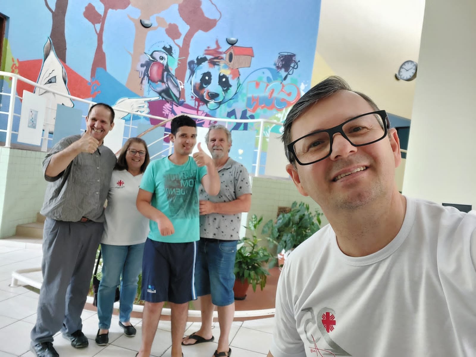 Nestes locais, foi possível conversar com as pessoas, conhecer um pouco de suas histórias. Eles também percorreram as dependências da propriedade, conheceram as casas, os espaços comuns, as áreas de atendimento e outras, reservadas aos moradores assistidos, por exemplo.